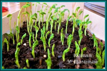 После того, как семена посажены в грунт, категорически нельзя допускать пересыхание верхнего слоя. При недостаточной влажности верхнего слоя грунта, проклюнувшиеся ростки, могут просто погибнуть, от недостатка влаги. Влажность грунта должна быть в пределах 80-90%.