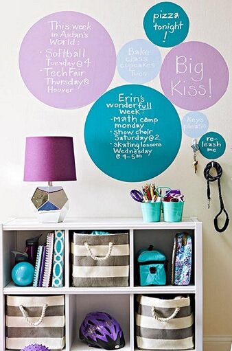 Если вы не готовы к покраске целой стены, попробуйте грифельные наклейки. Они бывают разных форм, размеров и цветов, их легко найти в интернете. Наклейте их на мебель, дверь или стену, а затем добавляйте весёлые надписи, рисунки или пожелания маркерами на водной основе. Это отличный способ добавить игривости в детскую или кухню без долгих ремонтных работ.