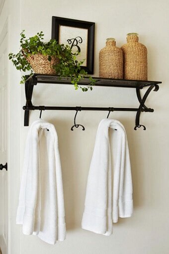 6. Попробуйте оригинальные полочки. Не стоит приобретать в свою маленькую ванную комнату обычную систему хранения, подойдите творчески и подберите вариант с более декоративным акцентом. Желательно чтобы она была многоярусной (полочки, штанги), так как пространство очень ограничено.
