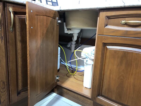 5-ступенчатый фильтр для очистки воды, установленный в моечном шкафу.