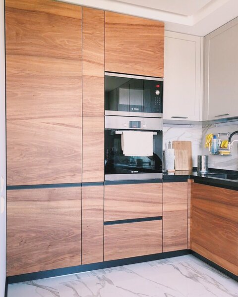 Устаревшая планировка с духовым шкафом внизу не соответствует современным представлениям об удобстве. Постоянные низкие наклоны, чтобы проверить блюдо или достать его, утомительны и небезопасны. В современном дизайне духовку, микроволновую печь и другую часто используемую технику размещают на уровне груди или рабочего фартука. Это кардинально меняет опыт готовки, делая его более комфортным и безопасным.