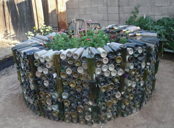Когда наступят холода и цветки на участке прекратят свое существование, на радость глазу придут оригинальные композиции из старых стеклянных и пластиковых бутылок.