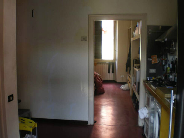 Раньше хранение на кухне не было организованным, поэтому создавалось ощущение маленького захламлённого пространства. Попасть из неё можно было в единственную комнату, которая выполняла функцию спальни.