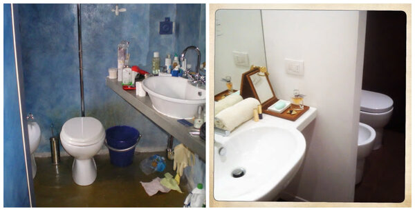 А в санузле оказалось достаточно избавиться от неестественно-синих стен и немного поменять расположение сантехники.