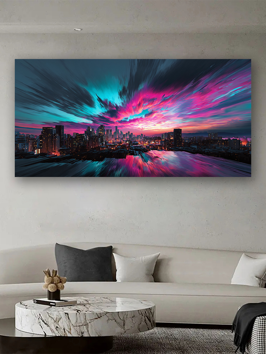 Объемные и перспективные изображения — известный прием для визуального расширения пространства. А в большом формате этот эффект работает еще мощнее. Смело выбирайте панорамные пейзажи, городские виды или абстракции с глубиной, напечатанные на матовом холсте.