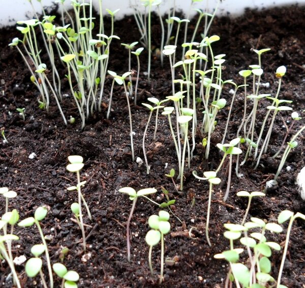 Если вы высеваете по 2 семечка в 1 стаканчик, то самый слабый росток рекомендуется удалить сразу после всходов. Если нужно высеять мелкие семена россыпью, то лучше распределить их рядами через 3-4 см, так чтобы не получилось в одном месте шапка всходов, а в другом пробел.