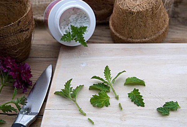 · верхушечные побеги обмакиваются в толченый древесный уголь, затем заглубляются в смесь песка и торфа на 1 почку;