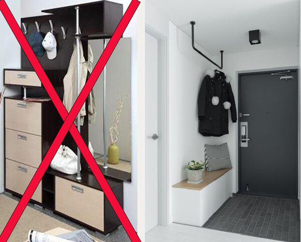Современные тенденции - чистые решения без перегруженности. Например, штанга для вещей, которая и без вещей смотрится графично и стильно.