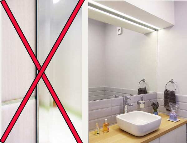 Например, зеркало. Раньше зеркальное полотно фиксировали на поверхности плитки. Сейчас его, как правило, клеят от стены до стены. Или оставляют для него место между плиткой, с которой зеркало разделяет обычный межплиточный шов. И выглядит такое решение чище, и плитки уходит меньше.