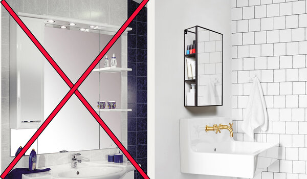 Одно из новых веяний - зеркало с боковыми полочками. Пока не знаю, завоюет ли оно ваши сердца, но зеркала с полками на поверхности точно останутся в прошлом - поддерживать чистоту на такой сложной поверхности намного сложнее, и оно уже смотрится захламленным.