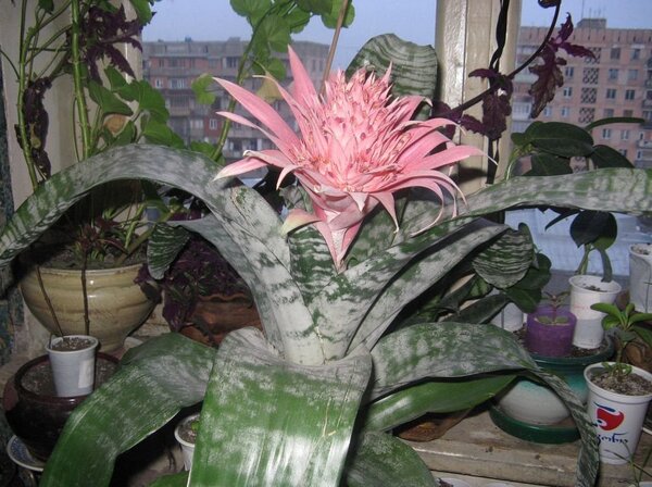 3. Влажность. Для эхмеи оптимальной является средняя влажность. Слишком сухой воздух негативно отражается на ее развитии.