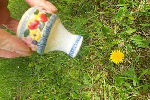 2. С помощью поваренной соли. Этот метод лучше применять на первой стадии, когда одуванчики еще не заполонили весь участок. Рецепт таков: берем два стакана воды, добавляем в каждый полстакана соли. Затем этим раствором обрабатываем одуванчики.
