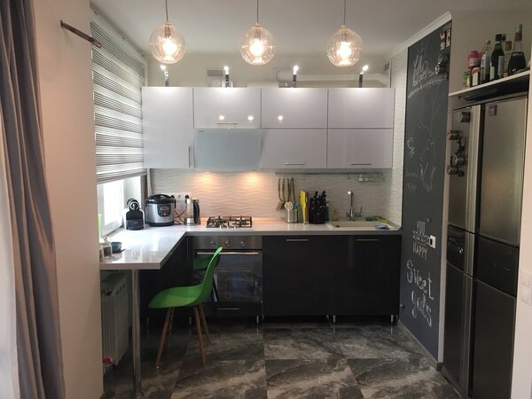 Результат перепланировки: современная кухня-гостиная в хрущевке