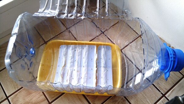 Ножом или ножницами вырежьте крышку для теплички, согните её несколько раз, чтобы образовался ровный сгиб в основании. В дне теплички шилом сделайте дырочки по всей площади, чтобы лишняя вода после полива стекала в поддон.