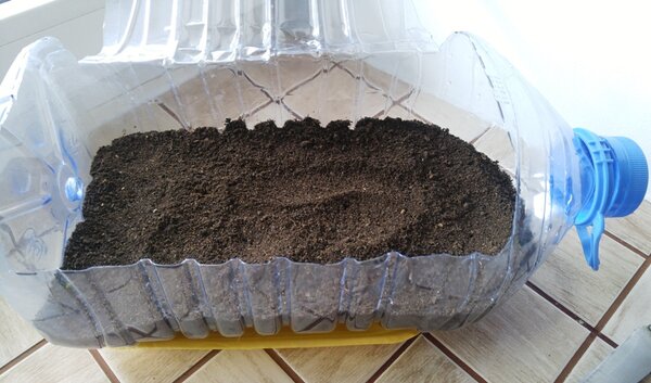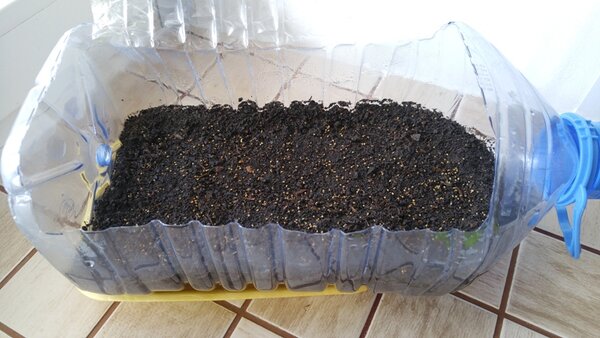 В тепличку насыпьте землю для рассады слоем 4-6 см, такой толщины грунта хватит для развития сеянцев до пикировки. Землю в тепличке увлажните, проведите посев семян.
