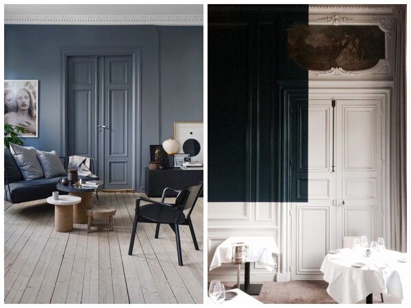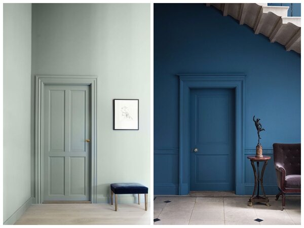 Только не пишите, что с классикой так нельзя — это тема для отдельных дискуссий. Лучше обратите внимание, за что именно цепляется взгляд — не за наличник же? Он объемный, да, но внимание на себя перетягивает именно цвет и то, как двери и стена окрашены.