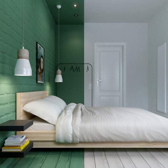 Помните, как в одной из рассылок мы прятали телевизор? Дверь спрячем так же — покрасив в один цвет со стеной! (или стену в один цвет с дверями, что технически проще и дешевле, а от перестановки слагаемых эффект не меняется). Да, и красим её вместе с ненавистными наличниками! А потом ещё и привлечём внимание к тому самому дивану, выбрав его в контрастном цвете ?