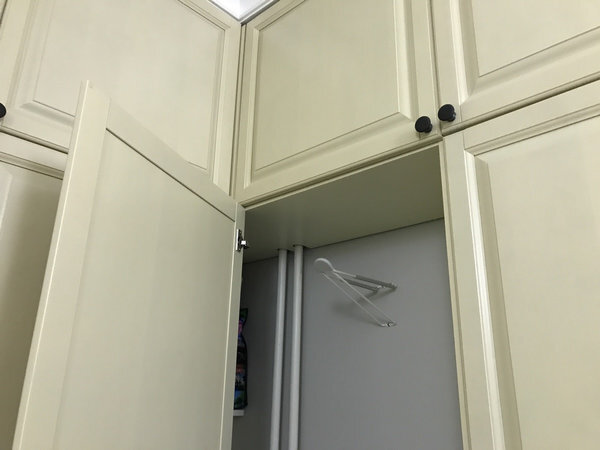 Газовую трубу мы как-то прятали в съемный короб, который совпадал по цвету с фартуков. При необходимости он легко снимался. Не видно, но законно!