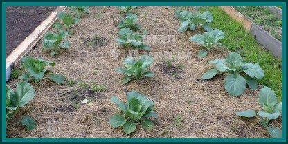 Сидят мои капустные саженцы на лужайке из сено-соломы. Ходила, ходила и решила, что капусту надо, как-то от вредителей защитить. Между рядками, прямо на мульчу еще компоста добавила и бархатцев насажала. Ну, прямо красота, цветочно-овощная клумба получилась.