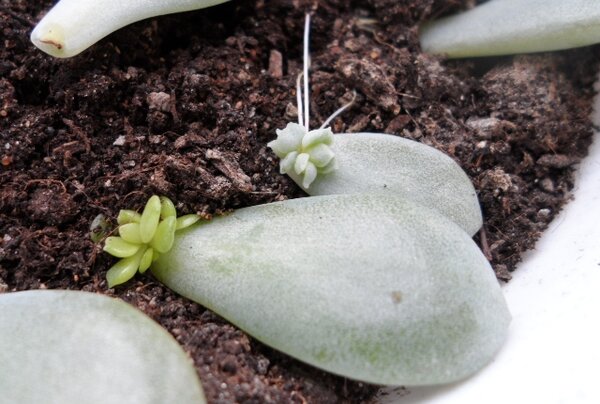 Размножается эхеверия очень просто. Отломите листик с нижней части розетки и положите на землю или когда небольшой лист с цветоноса упадёт в горшок, вскоре у его основания появится крохотная розеточка. Новые розетки быстро растут, а лист, от которого они появились – усыхает. Многочисленную рассаду эхеверий можно вырастить к лету и высадить на альпийскую горшку, как однолетнее декоративное растение.