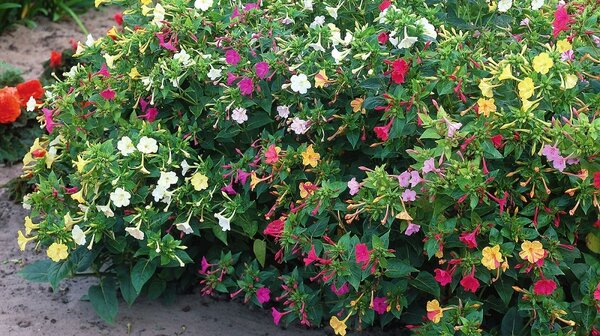 Семена у мирабилиса довольно крупные, с хорошей всхожестью. При посеве соблюдайте расстояние между будущими растениями не менее 40 см, так как кусты сильно разрастаются в ширину.