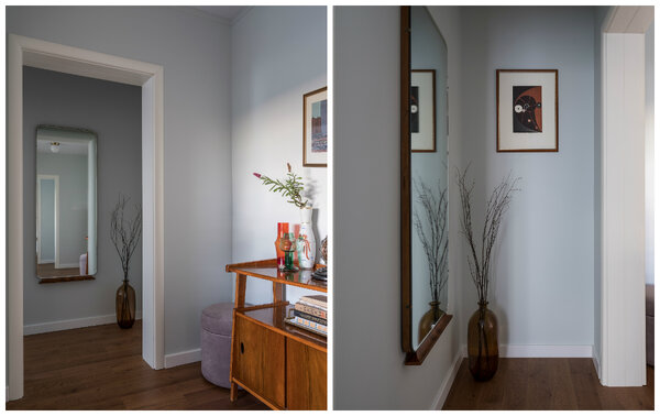 Лёгкое сканди-настроение интерьеру придают детали. Например, картину в коридоре и некоторые предметы декора владельцы квартиры привезли из Стокгольма.