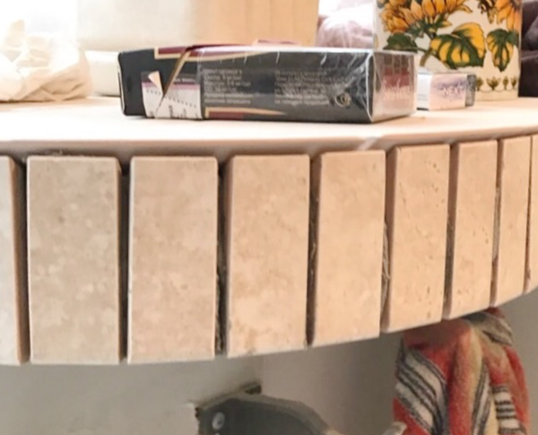 Основа была готова к облицовке. Мастер проявил себя как настоящий перфекционист, особенно при укладке плитки на скругленный край столешницы, что требовало высокой точности.