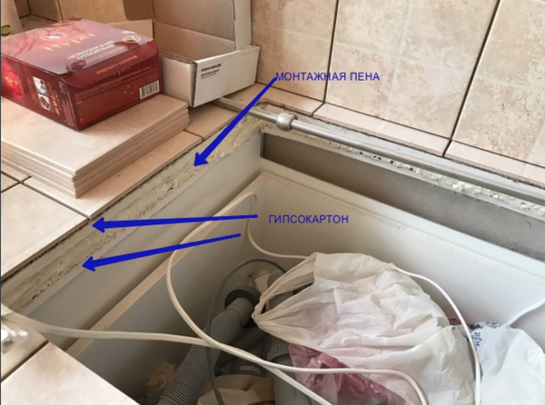 Шаг 5: Изготовление и облицовка каркаса столешницы. Это самый ответственный этап. Мастер собрал прочное основание из двух слоев гипсокартона с металлическим каркасом между ними. В зонах под мойку и варочную панель пустоты были заполнены монтажной пеной для дополнительной жесткости.