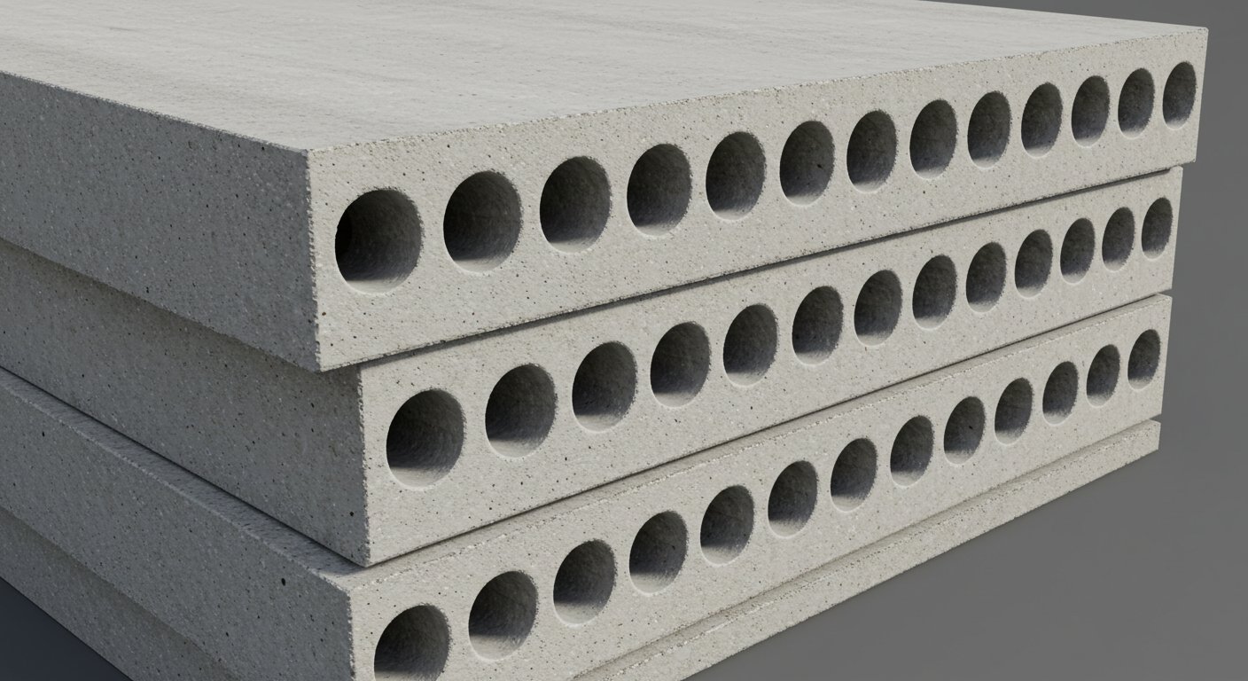 В рамках данного проекта были выбраны пустотные плиты. Их отличительная черта — наличие продольных цилиндрических полостей, проходящих через всё изделие. Эти пустоты выполняют несколько важных функций: существенно снижают общий вес конструкции, что облегчает транспортировку и монтаж, а также создают воздушные камеры, которые значительно улучшают тепло- и звукоизоляционные свойства перекрытия.