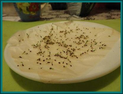 - Далее заворачиваю семена во влажную ткань и ставлю в теплое место для проращивания. Обычно на это уходит 8-12 дней.