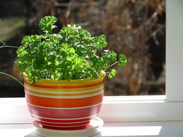 Горшки ставлю на самое светлое место. Но тут стоит иметь в виду, что та же петрушка, посаженная таким способом, более стойко переносит нехватку света, чем та, что выращивается из семян.