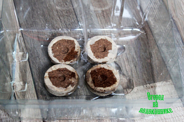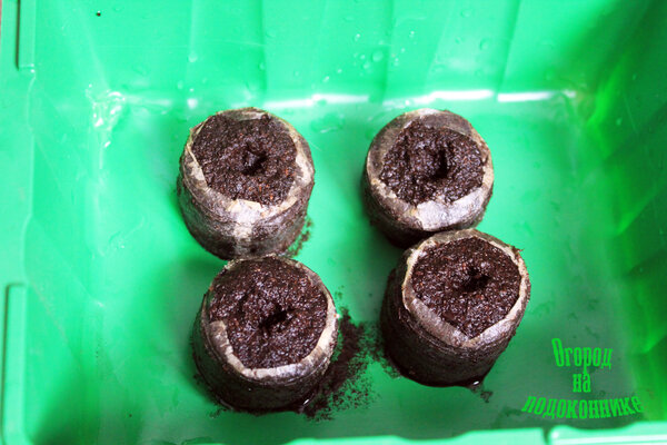 Основная работа завершена! Далее необходимо следить за влажностью, периодически проветривать посевы и ждать дружных всходов. Полив лучше осуществлять через поддон, чтобы не размывать верхний слой таблетки.