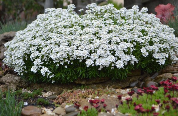 Иберис — растение с очаровательной простотой. Несмотря на непродолжительный период цветения (около месяца), он успевает подарить саду нежный, медовый аромат, привлекающий пчел и бабочек. Наибольшей популярностью у садоводов пользуются два вида: иберис горький с белоснежными соцветиями и иберис зонтичный, образующий плотные, плоские «шапки» белого, розового или лилового цвета. Идеально подходит для бордюров и альпинариев.
