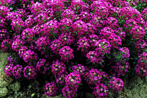 Алиссум — это настоящее ароматное облако. Образуя сплошные низкие коврики высотой 10-20 см, он обильно цветет белыми, лиловыми или розовыми мелкими цветками, источающими сильный, сладкий запах, напоминающий мед. Это одно из самых универсальных растений: его можно выращивать в открытом грунте на клумбах, в вазонах, контейнерах на балконе и даже в подвесных кашпо. Алиссум прекрасно заполняет пустоты и цветет до самых заморозков.