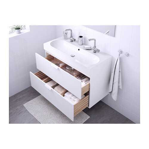 Продолжая тему ссор на почве чистки зубов. Знаете, чтобы что-то спрятать, нужно положить это на самое видное место? Так вот! Раковина из Икеи (ага! оттуда =)) ) Бровикен при ширине 100 имеет два помывочных места ;)
