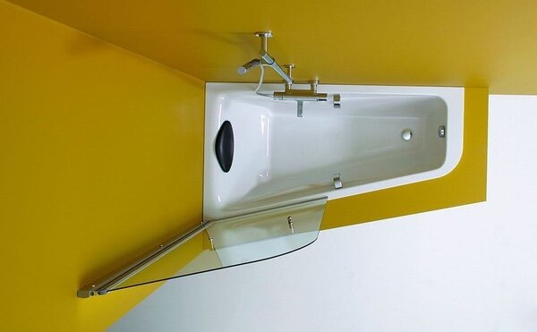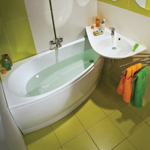 Серия Ravak Be Happy. Ванная бывает как левая, так и правая длиной 150, 160 или 170 см. Причем, можно использовать ее не только в предложенном производителем варианте, но и для выигрывали места, скажем, для ног сидящего на унитазе.