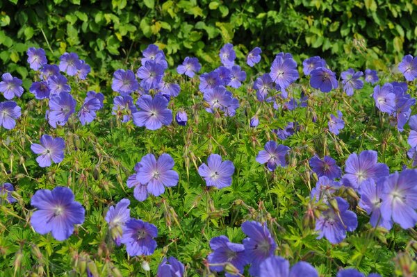 Герань садовая гималайская очень быстро разрастается вширь и хорошо заполняет пустующие места на клумбе. Цветочек очень декоративен и не требует обрезки. Прищипывать веточки также не надо, кустики сами себя формируют.