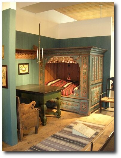 Практичная шведская мебель уже в те времена была встроенной. Например, кровати со встроенными шкафами и ящиками для хранения.