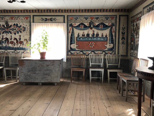 В сохранившихся домах (а их довольно много) можно увидеть работы шведских мастеров с явно выраженным национальным колоритом. Там, где сохранились оригинальная мебель и декор, рассматривать предметы - огромное удовольствие. И чем дальше от столицы, тем больше могли проявить себя местные художники.