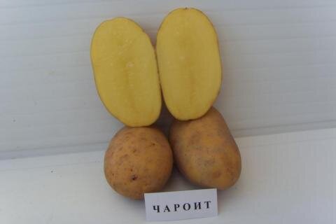 Этот сорт был выведен отечественными селекционерами и относится к ранним. Созревают клубни этого сорта примерно на 60-65 день. Мякоть у сорта Чароит имеет бледно-желтый оттенок, кожура также желтоватая. Клубни могут содержать до 17% крахмала, поэтому отлично подходят для запеканок и приготовления пюре. Сорт устойчив ко многим болезням, в том числе, к раку картофеля. Отличается хорошей лежкостью.