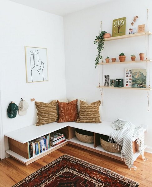 1. Угловая скамья. У Вас были ситуации, когда приходили гости и в Вашей миниатюрной гостиной не хватало «посадочных мест»? Да…?! Не беда! Угловая скамья с мягкими подушками способна добавить как функционала, так и эстетики Вашему пространству.