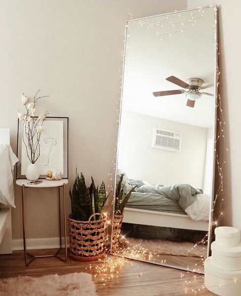 4. Уголок модницы. Всем известно, что отражающая поверхность визуально расширяет любое пространство. Именно поэтому отличной идеей может стать большое зеркало без рамы в углу небольшой спальни.
