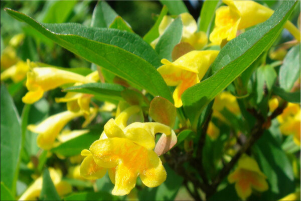 Кустарник абелии имеет около 30 видов, и все эти кустики отличаются привлекательным внешним видом, и отличаются длительным цветением. Есть представители абелии листопадные и вечнозеленые. Кустики достигают до 2,5-3 м в высоту. Веточки красиво переплетаются, поэтому растение можно использовать как самостоятельное или как живую изгородь. Зеленые листики не очень крупные миндалевидной формы с мелкими зубчиками по краю и темной зеленью.