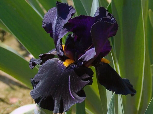 – Бородатые ирисы. Своё название они получили за характерные мохнатые полоски («бородки») на нижних лепестках. Их цветок обычно состоит из трёх устремлённых вверх лепестков (стандартов) и трёх отогнутых вниз (фолов). Это самые популярные и эффектные ирисы, но они же и более капризны. Им жизненно необходимо обилие солнца — в тени они просто откажутся цвести. Также они не терпят переувлажнения почвы, а их мощные цветоносы иногда нуждаются в опоре.